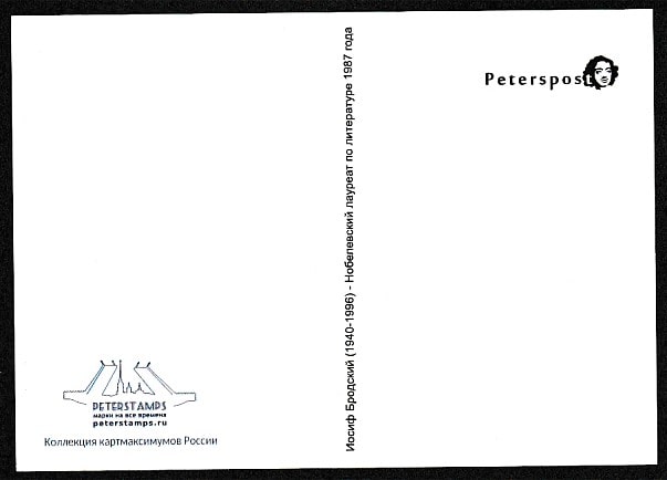 Картмаксимум. Нобелевский лауреат по литературе Иосиф Бродский, 03.12.2015 год, СПб (непочтовая марка)