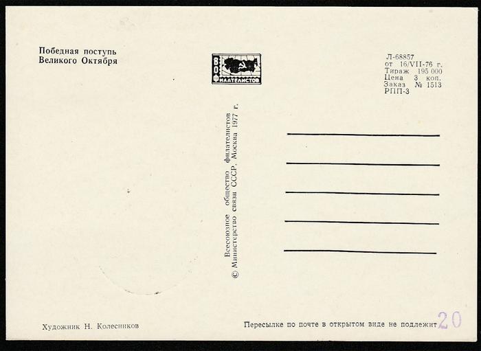 Картмаксимум со спецгашением. Филвыставка 60 лет Великого Октября. 1-9.10.77 г.
