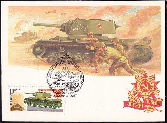 Картмаксимум со спецгашением "Оружие Победы" Танк КВ, 25.01.1984 год, Москва