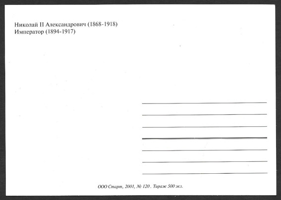 Карточка. Императоры России. Николай II. 2001 г.
