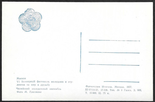 Карточка. Москва. 6-й фестиваль молодежи. Изогиз, 1957 г.