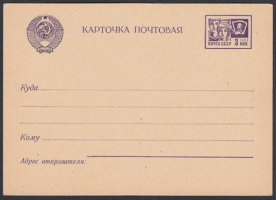 Карточка почтовая. Марка - Советская молодежь, 1967 год