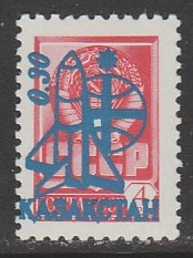 Казахстан 1992 год. Совместный космический полёт России и Франции. НДП нового номинала 0,30R/4К на стандарте СССР, 1 марка
