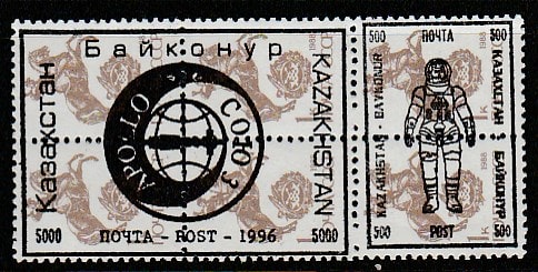 Казахстан 1996 год. НДП на стандарте СССР: "Космическая программа Союз-Аполлон, Байконур", 6 марок.
