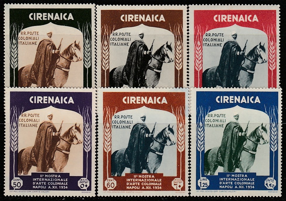 Киренаика (Ливия) 1934 год. II Международная колониальная выставка в Неаполе. Всадник, 6 марок из серии (наклейка) (30/Х/Х) (6 из 12)
