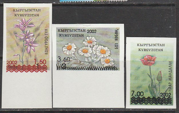 Киргизия 2002 год. НДП на марках "Флора Киргизии", 3 б/зубц. марки.