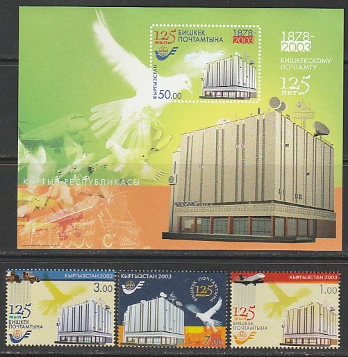 Киргизия 2003 год. 125 лет Почтамту Бишкека, 3 марки + блок.