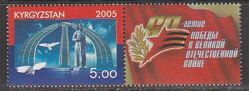 Киргизия 2005 год. 60 лет Победы в ВОВ, 1 марка с купоном.