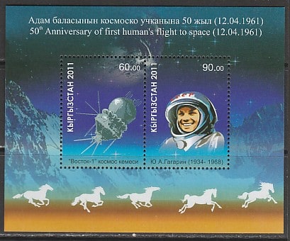 Киргизия 2011 год. 50 лет первому полёту человека в космос, блок (166.299)