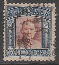 Китай 1947 год. Стандарт. Сунь Ятсен, ном. 2000 $, 1 марка из серии (гашёная)