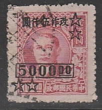 Китай 1948 год. Стандарт. Политик Сунь Ятсен, ндп, ном. 5000 $/100 $, 1 марка из серии (гашёная) (1 из 3) (1/0,3)