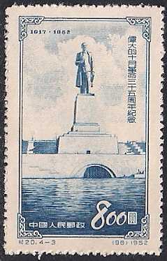 Китай 1953 год. Памятник И.В. Сталину на Волго-Донском канале. 1 марка из серии без клея