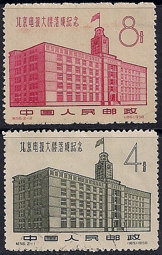 Китай 1958 год. Новое здание телеграфа в Пекине. 2 гашеные марки
