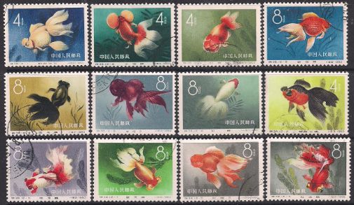 Китай 1960 год. Золотые рыбки. 12 гашеных марок