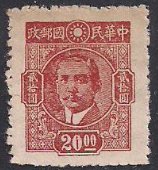 Китай (КНР) 1945 год. Сунь Ятсен (ном. 20). 1 марка из серии (без клея) ШВ 0.4м