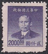 Китай (КНР) 1949 год. Сунь Ятсен (ном. 2000). 1 марка из серии (без клея) ШВ 0.7м