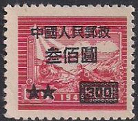 Китай (КНР) 1950 год. Паровоз (ном. 50) с НДП. 1 марка из серии (без клея) ШВ 0.7м