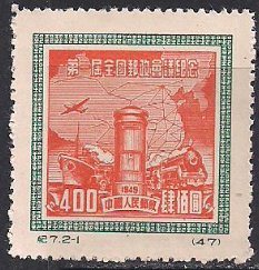 Китай (КНР) 1950 год. Первая почтовая конференция (ном. 400). 1 марка из серии (без клея) ШВ 1.5м