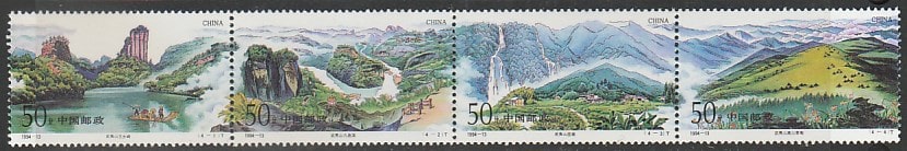 Китай (КНР) 1994 год. Всемирное наследие ЮНЕСКО. Горы Уишань, 4 марки в сцепке.