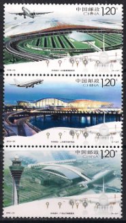 Китай (КНР) 2008 год. Авиация. Сцепка 3 марки 2.4м