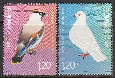 Китай (КНР) 2012 год. 20 лет дипотношений с Израилем, 2 марки.