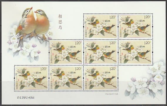 Китай (КНР) 2016 год. Птицы: Красная леготрица, малый лист.