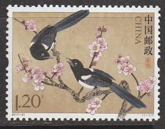 Китай (КНР) 2017 год. Птицы. Сороки, 1 марка.