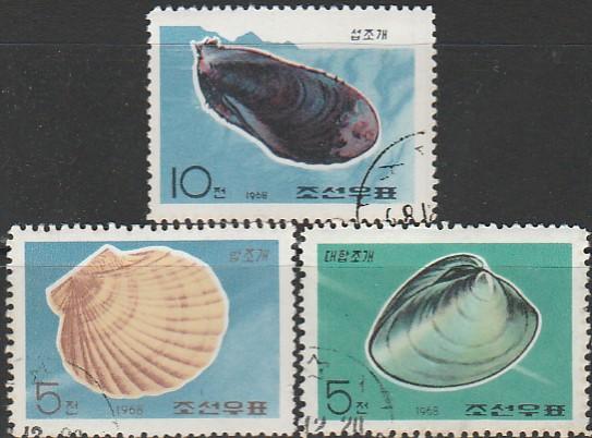 КНДР 1968 год. Мидии, 3 гашёные марки