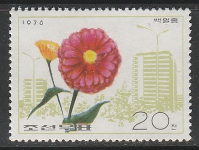 КНДР 1976 год. Цветы. Циннии, 1 марка из серии.