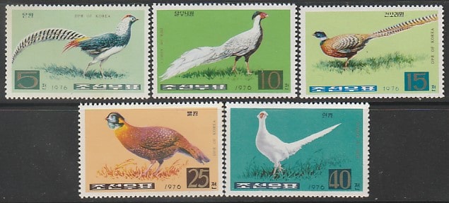 КНДР 1976 год. Фазаны, 5 марок из серии.