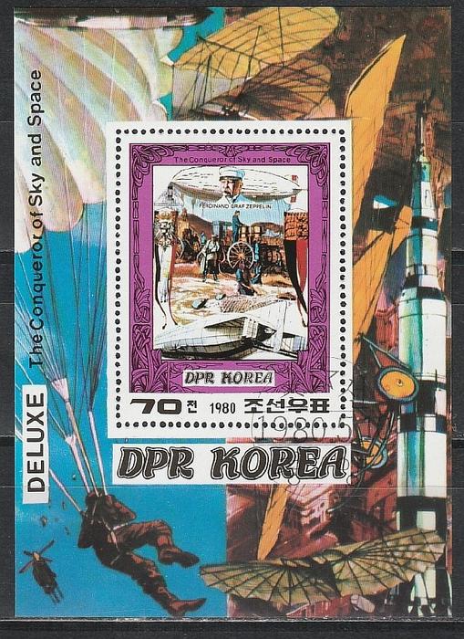 КНДР 1980 год, История Воздухоплавания, гашёный блок
