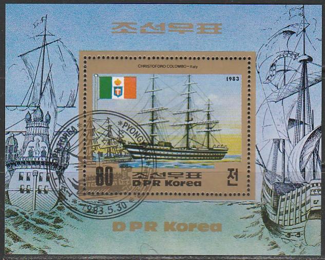 КНДР 1983 год. Парусник "Христофор Колумб", гашёный блок