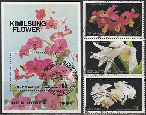 КНДР 1984 год. Цветы, 3 марки + блок (гашёные)