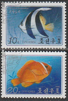 КНДР 1986 год. Тропические рыбки, 2 гашёные марки