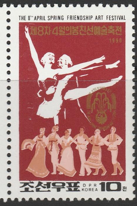 КНДР 1990 год. Фестиваль дружбы. Танцевальная группа. 1 марка