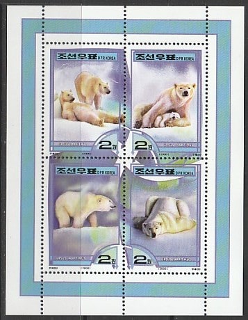 КНДР 2000 год. Белые медведи, блок (182.4285)