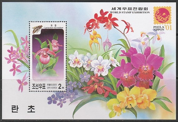 КНДР 2001 год. Международная филвыставка в Токио. Орхидеи, блок.