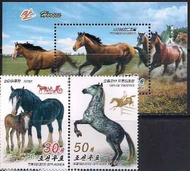 КНДР 2013 год. Лошади. 2 марки + блок