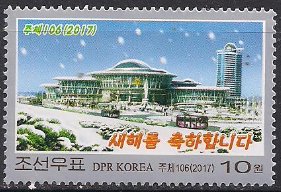 КНДР 2017 год. Архитектура Пхеньяна. 1 марка
