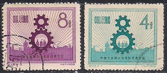 Китай. КНР 1957 год. Съезд профсоюзов в Лейпциге. 2 гашеные марки