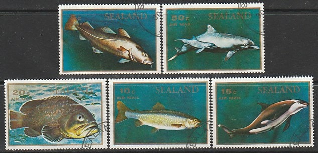 Княжество Силенд 1970 год. Морская фауна, 5 гашёных марок (непочтовые)