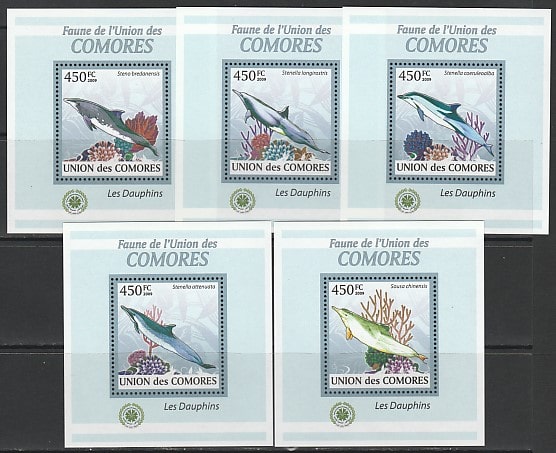 Коморы 2009 год. Дельфины, 5 люксблоков
