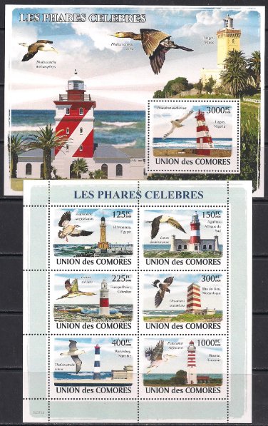 Коморы 2009 год. Маяки и птицы. Малый лист + блок 26м