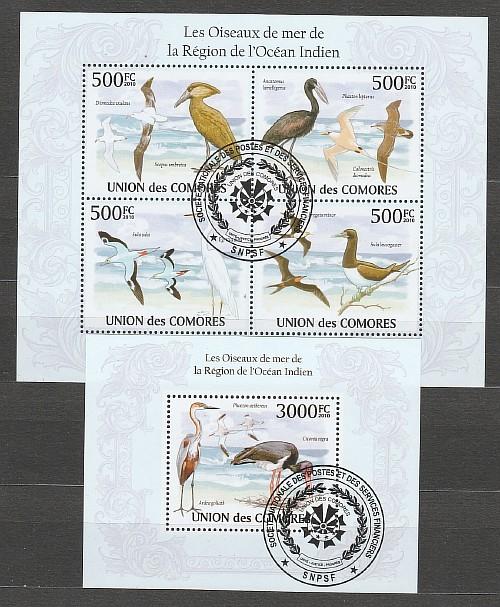 Коморы 2010 год, Птицы, гашёный малый лист + блок
