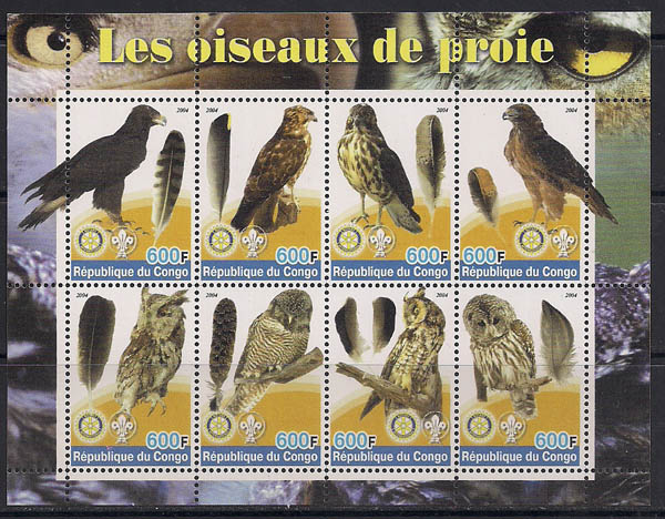 Конго 2004 год. Хищные птицы. 1 лист