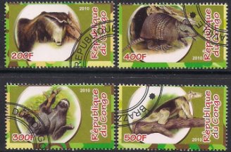 Конго 2010 год. Неполнозубые. 4 гашеные марки