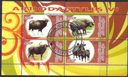 Конго 2010 год. Парнокопытные животные. Гашеный малый лист Сувенирный выпуск