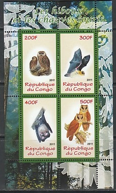Конго 2011 год. Совы и летучие мыши, малый лист