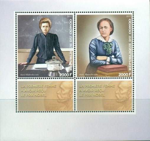 Конго 2017 год. Мария Склодовская-Кюри, малый лист