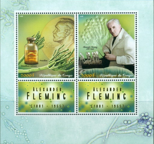 Конго 2018 год. Ученый Александр Флеминг, малый лист